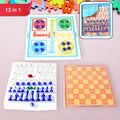 17669 13 In 1 Family Board Game Chess Snakes Ladders Ludo Tic-tac-toe Checkers Travel Bingo Football Space Venture Steeplechase Set For Kids