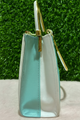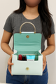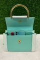 சிறப்பம்சங்கள்: பையின் பக்கவாட்டில் வெள்ளை நிறப் பகுதிகள் உள்ளன, இது இரண்டு நிறங்கள் கொண்ட தோற்றத்தை அளிக்கிறது. முன்பக்கத்தின் நடுவில் தங்க நிற உலோகத்தால் ஆன லோகோ உள்ளது.