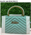 Design: A structured, boxy handbag. The front features a chevron or zig-zag quilted pattern.