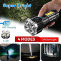 4 in 1 LED Torch Lights Rechargeable Emergency Torch Light 3W USB Charge Flashlight - High Power Long Distance Beam Range 4 Modes Torch for Outdoor, Indoor, Hiking, Walking